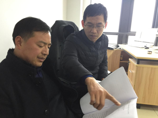 圖為:公司總經理胡海峰(左一)與華質卓越生產力促進(北京)有限公司合肥分公司總經理陽建新商討《標準化管理辦法》。