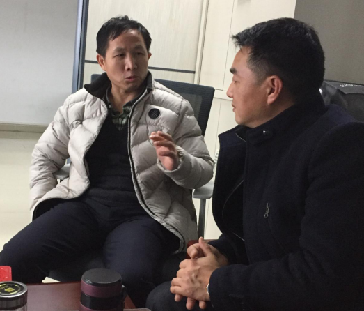 圖為:公司辦公室主任方志義(右一)與華質卓越生產力促進(北京)有限公司合肥分公司潘工(左一)洽談。
