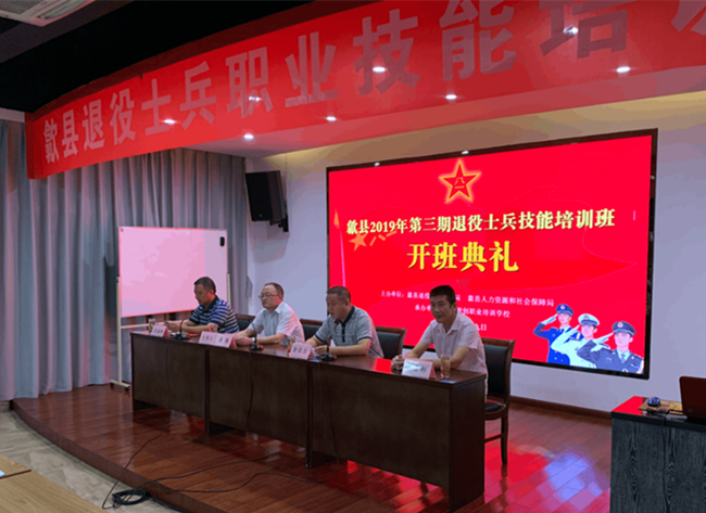 9月9日,歙縣2019年度第三期退役士兵職業(yè)技能培訓(xùn)期在我青創(chuàng)職業(yè)培訓(xùn)學(xué)校隆重開班。縣退役軍人事務(wù)局局長金自立、副局長潘煉等領(lǐng)導(dǎo),青創(chuàng)職業(yè)培訓(xùn)學(xué)校、康順駕校負(fù)責(zé)人出席開班儀式并發(fā)表講話。