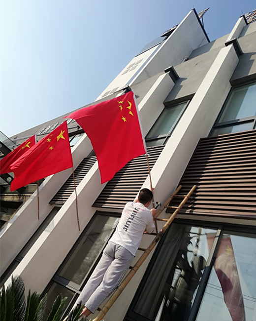 國(guó)慶節(jié)來(lái)臨之際,為營(yíng)造干凈、歡樂(lè)、喜慶、祥和的節(jié)日氣氛,創(chuàng)造更加整潔優(yōu)美的節(jié)日環(huán)境,9月29日全體員工利用中午和下午休息時(shí)間,對(duì)公司整體環(huán)境進(jìn)行衛(wèi)生大掃除活動(dòng),并懸掛標(biāo)語(yǔ)、安插國(guó)旗,以嶄新的面貌迎接祖國(guó)70周年華誕。