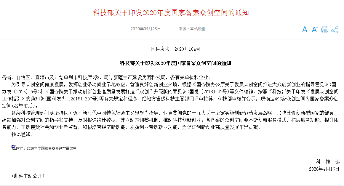 近日,國家科技部發(fā)文,印發(fā)2020年度國家眾創(chuàng)空間的通知,安徽省12家眾創(chuàng)空間上榜,歙縣青創(chuàng)——眾創(chuàng)空間成為全市首家民營眾創(chuàng)空間獲此殊榮。