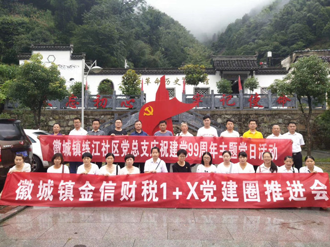 2020年7月3日,在中國(guó)共產(chǎn)黨成立99周年之際,我金信財(cái)稅黨支部1+X黨建圈與練江社區(qū)黨總支20余名黨員和建黨對(duì)象、積極分子等,冒雨走進(jìn)歙縣上豐鄉(xiāng)巖源村革命老區(qū),聯(lián)合開(kāi)展“走進(jìn)紅色巖源 重溫革命歷史”主題黨日活動(dòng)。