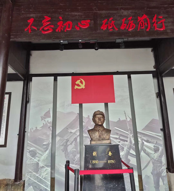 當(dāng)日,在巖源村,支部黨員與積極分子認(rèn)真聆聽(tīng)鄉(xiāng)、村干部對(duì)革命年代艱苦歲月、浴血奮戰(zhàn)事跡的深情回憶和真實(shí)描述,并參觀巖源革命歷史陳列館,瞻仰新四軍游擊隊(duì)隊(duì)長(zhǎng)劉奎雕像。