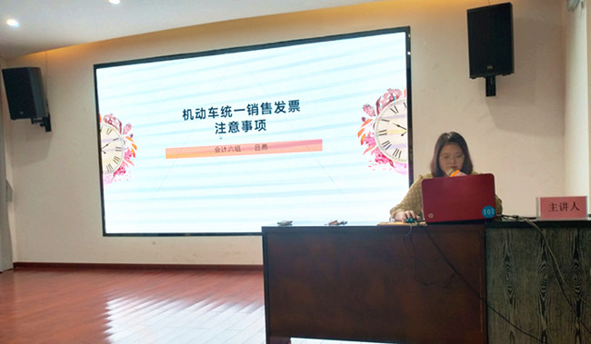 呂燕是一名初級會計(jì)師,她平時(shí)工作努力、勤奮好學(xué)、積極向上,已經(jīng)成為公司的骨干力量。此次分享她結(jié)合機(jī)動車銷售統(tǒng)一發(fā)票的種類、開具的注意事項(xiàng)以及特殊規(guī)定等幾個方面進(jìn)行詳細(xì)介紹,經(jīng)過呂燕的講解,使參與分享人員對機(jī)動車銷售發(fā)票開具、使用和抵扣有了更全面的了解和認(rèn)知,有助于更好的為企業(yè)做好服務(wù)。