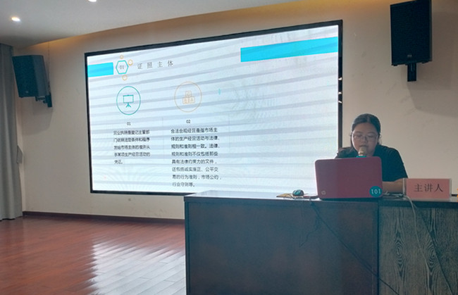 汪蕓是受理中心骨干成員之一,她工作認(rèn)真、待人熱情。主要負(fù)責(zé)企業(yè)工商注冊(cè)、信息變更、注銷等業(yè)務(wù)辦理。此次分享她結(jié)合日常工作積累和經(jīng)驗(yàn),從證照主體、公司名稱、注冊(cè)資本、經(jīng)營范圍等幾個(gè)方面進(jìn)行詳細(xì)介紹,并指出注意事項(xiàng),使參與分享人員對(duì)“企業(yè)證照”的相關(guān)事項(xiàng)有了更直接、深入的了解,最后中心副主任汪銘作了點(diǎn)評(píng),并就企業(yè)注冊(cè)資本與法律責(zé)任的關(guān)系作了補(bǔ)充,使分享的內(nèi)容更加全面。