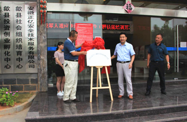 2020年9月10日,“黃山市退役軍人就業(yè)培訓(xùn)與創(chuàng)業(yè)孵化基地”揭牌儀式在歙縣招商投資服務(wù)中心大樓前隆重舉行。儀式由歙縣退役軍人事務(wù)局副局長(zhǎng)潘煉主持,歙縣退役軍人事務(wù)局局長(zhǎng)金自立作重要講話(huà),黃山市退役軍人事務(wù)局副局長(zhǎng)朱樂(lè)華出席儀式,并與金自立局長(zhǎng)一起為基地揭牌。安徽香寧眾創(chuàng)科技服務(wù)有限公司、歙縣青創(chuàng)職業(yè)培訓(xùn)學(xué)校、歙縣招商投資服務(wù)中心以及參加當(dāng)日適應(yīng)性培訓(xùn)的60余位退役士兵見(jiàn)證了這一重要時(shí)刻。