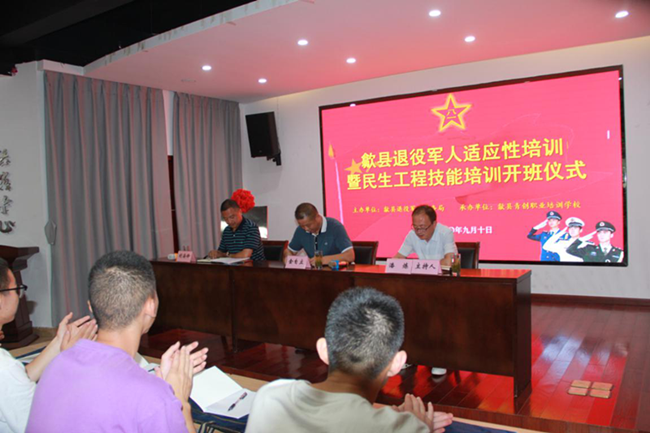 9月10日,歙縣2020年度退役軍人適應(yīng)性培訓(xùn)暨民生工程技能培訓(xùn)在我青創(chuàng)職業(yè)培訓(xùn)學(xué)校隆重開班。縣退役軍人事務(wù)局局長金自立、副局長潘煉、青創(chuàng)職業(yè)培訓(xùn)學(xué)校胡海鋒出席開班儀式。