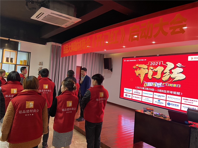 新年伊始,萬象更新。加油鼓勁,再創(chuàng)輝煌!2021年2月20日,銘品大牌建材商會開展的《開門紅》專題培訓(xùn)大會在歙縣青創(chuàng)眾創(chuàng)空間順利舉辦,來自銘品商會的40余名營銷人員到場參訓(xùn)。
