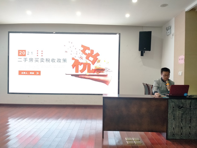 2021年4月24日,由點(diǎn)單財稅部柯淼主講的“二手房買賣稅收政策”專題PPT分享在一樓眾創(chuàng)空間舉行,園區(qū)企業(yè)負(fù)責(zé)人和中心財稅服務(wù)人員50余人參與此次分享。
