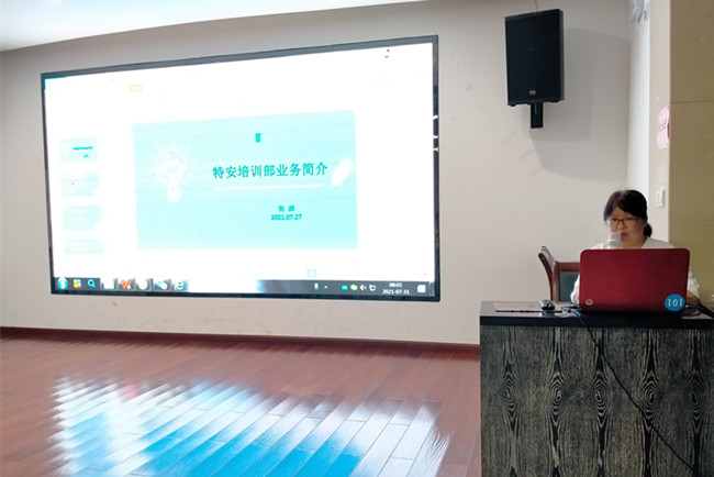 張瀟是特安培訓(xùn)部副經(jīng)理,她平日工作認(rèn)真負(fù)責(zé),積極向上,使得該部門自成立以來業(yè)績較為突出。此次分享她主要對目前開展的特種設(shè)備安全管理和作業(yè)人員培訓(xùn)、生產(chǎn)經(jīng)營單位主要負(fù)責(zé)人和安全生產(chǎn)管理人員培訓(xùn)、安全生產(chǎn)咨詢服務(wù)等業(yè)務(wù)進行一一介紹,并結(jié)合相關(guān)法規(guī)要求進行宣傳和解釋,尤其是在2021年底前通過特種設(shè)備考試取得證件的,還可以向人社部門申請職業(yè)技能提升補貼,減輕企業(yè)培訓(xùn)費用的負(fù)擔(dān)。經(jīng)過張瀟的詳細講解,大家對企業(yè)安全生產(chǎn)基本需求、特安培訓(xùn)部所提供的具體業(yè)務(wù)有了更深的了解,將為企業(yè)提供更加全面、有效的服務(wù)發(fā)揮重要作用。
