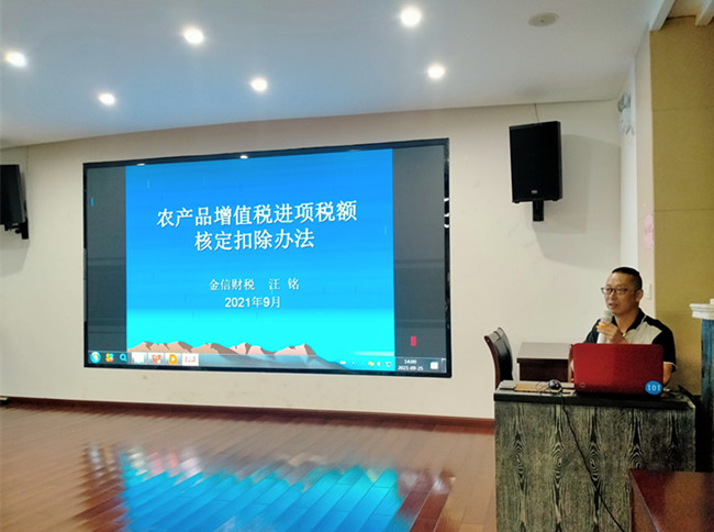 為進(jìn)一步加強(qiáng)涉農(nóng)產(chǎn)品相關(guān)稅收政策的掌握與理解,提升涉農(nóng)企業(yè)財(cái)稅籌劃和核算管理水平,9月25日下午,中心舉辦“農(nóng)產(chǎn)品增值稅進(jìn)項(xiàng)稅額核定扣除辦法”專題培訓(xùn),園區(qū)涉農(nóng)企業(yè)、中心財(cái)稅服務(wù)人員40余人參加。