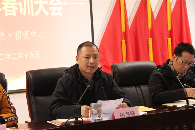 為總結回顧2021年工作成效,謀劃和布局2022年各項工作,明確目標,細化措施,2月19日,招商中心、金信財稅2022春訓大會在中心駐地順利舉行。公司全體員工60人參加會議,招商中心主任、金信財稅總經(jīng)理胡海鋒主持會議。