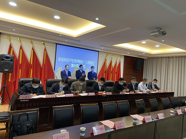 4月20日至26日是全國知識(shí)產(chǎn)權(quán)宣傳周,今年活動(dòng)的主題是:全面開啟知識(shí)產(chǎn)權(quán)強(qiáng)國建設(shè)新征程。4月21日,歙縣市場(chǎng)監(jiān)管局聯(lián)合歙縣經(jīng)濟(jì)開發(fā)區(qū)在歙縣招商投資服務(wù)中心召開歙縣首場(chǎng)知識(shí)產(chǎn)權(quán)質(zhì)押融資“ 入園惠企”銀企對(duì)接會(huì)。市市場(chǎng)監(jiān)管局副局長(zhǎng)黃劍、縣市場(chǎng)監(jiān)管局局長(zhǎng)江志偉、縣經(jīng)濟(jì)開發(fā)區(qū)管委副主任潘利青、縣銀保監(jiān)組主任吳志捷出席會(huì)議。歙縣50家高新技術(shù)企業(yè),市、縣8家金融機(jī)構(gòu)和資產(chǎn)評(píng)估、保險(xiǎn)和知識(shí)產(chǎn)權(quán)代理等機(jī)構(gòu)共同參加此次活動(dòng)。