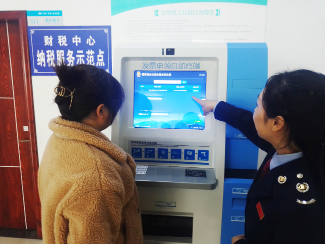 “現(xiàn)在公司有了自助領票終端,領發(fā)票就像在ATM機上取錢一樣簡單方便,再也不用去稅務辦稅大廳排隊了。”2月10日,在歙縣富堨經濟園區(qū)——黃山市金信財稅代理事務所有限公司內,一臺發(fā)票申領自助終端順利通過網絡調試。公司財務會計張捷在歙縣稅務局工作人員的示范引導下,以代理企業(yè)黃山市一家人豆業(yè)有限公司的身份快捷領出增值稅發(fā)票20份。整個領取過程從辦稅人微信實名掃碼到選擇單位、到發(fā)票領用,僅用了3分鐘,方便省時又高效。