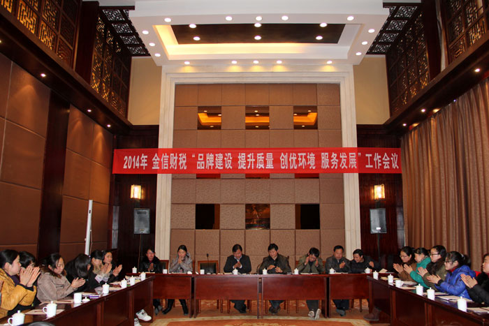 2014年是金信財(cái)稅的“品牌建設(shè)年”,為推進(jìn)、實(shí)施這項(xiàng)長期、艱巨的工作目標(biāo),公司于2月15日在歙縣飯店一樓舉行了會(huì)議,會(huì)議除了公司的33名員工外,還特別邀請了經(jīng)信委的洪亮、汪錦峰副主任參加了會(huì)議。