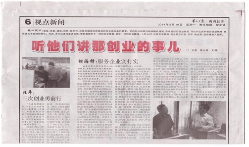 轉(zhuǎn)載2014年5月19日黃山日報(晨刊)文章: