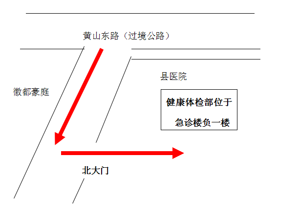 一、健康體檢部位置(線(xiàn)路1:不要上醫(yī)院平臺(tái),沿著縣醫(yī)院與徽都豪庭之間的主干道直行300米左轉(zhuǎn),從北大門(mén)進(jìn)入縣醫(yī)院,直行40米到達(dá)健康體檢部;線(xiàn)路2:上醫(yī)院平臺(tái),從一樓門(mén)診大廳,沿樓梯下到負(fù)一樓健康體檢部。)